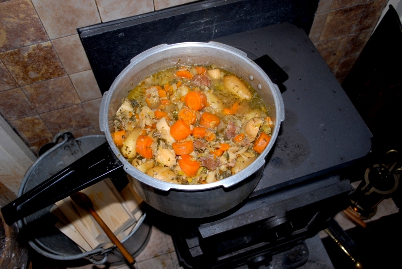 Slow cooking on the stove. Free heat!