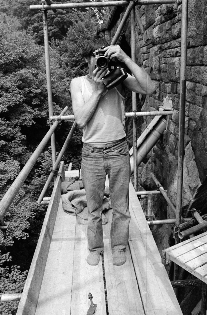 Peter Tatham working on Healey Dell viaduct in 1984. He's using the Practica camera I gave him after the lens dropped out of his old Box Brownie.