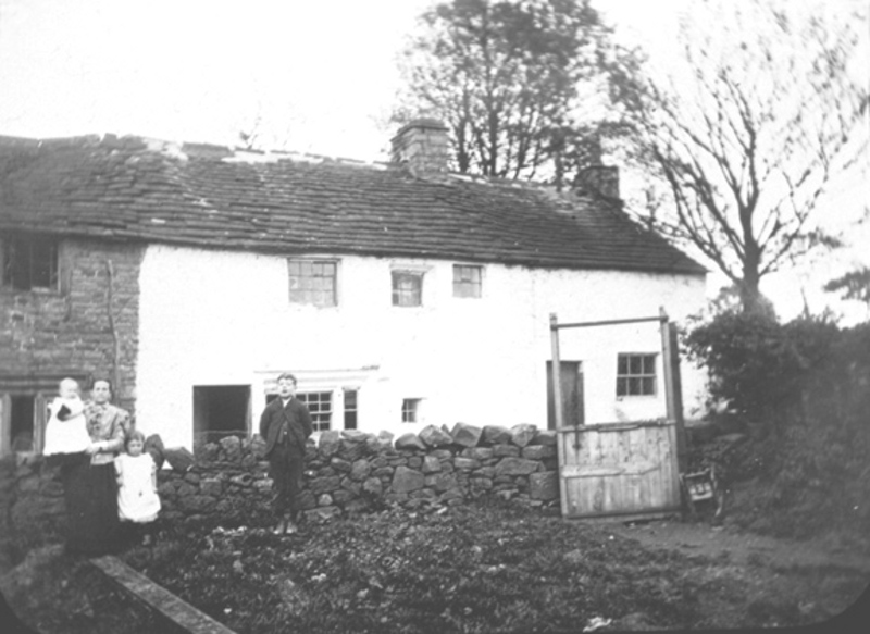 Higher Greenhill cottages Salterforth. Edmondson family in the garden.