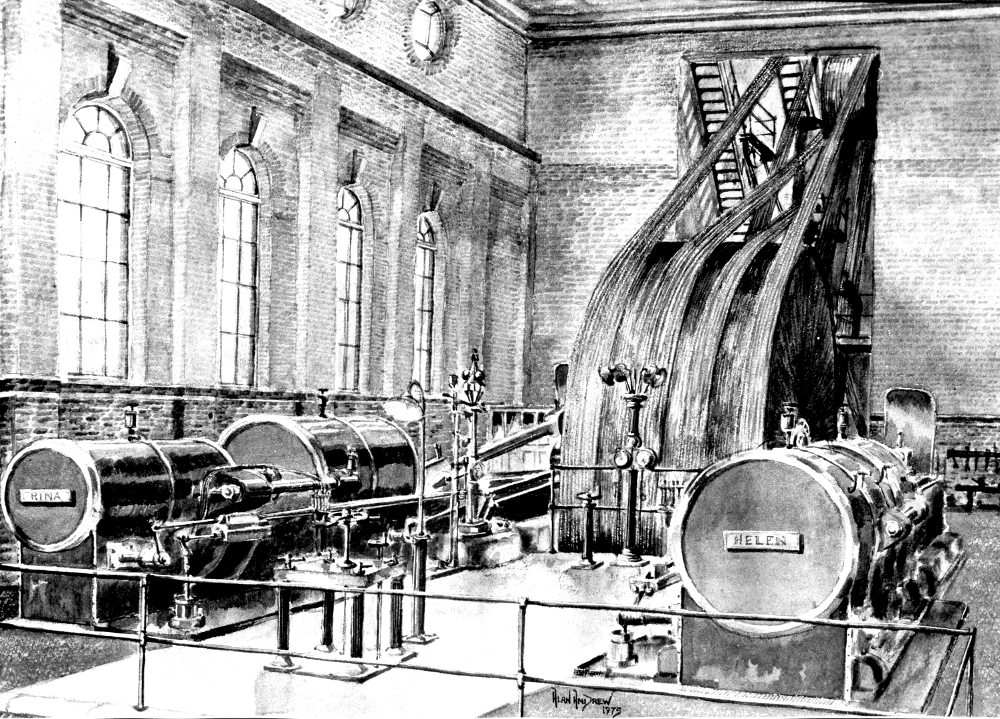 This is Alan Andrew's image of Trencherfield Engine at Wigan Pier, Wigan. In 2001 I inspected this engine at the request of John Ingoe of Rochdale Electric Welding in connection with a job they were doing on the barring engine. I noticed that the flywheel was loose, told them they must stop it and to date (March 2002) it has not run since.