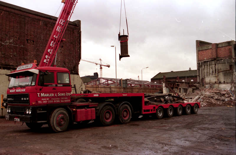 The Whitelees engine coming out of doors at the old Holroyd's foundry in Rochdale in 1989