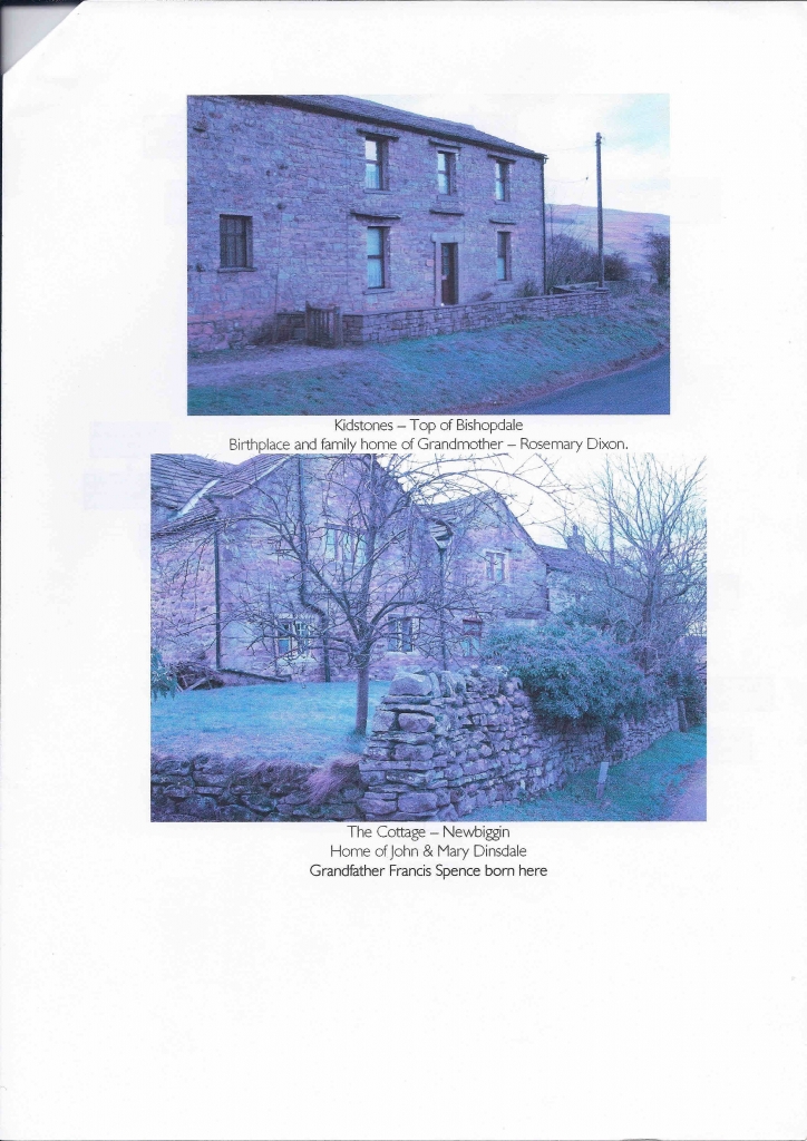 Bottom picture is family home of John and Mary Dinsdale, birthplace of Frances Spence Dinsdale - The Cottage - Newbiggin