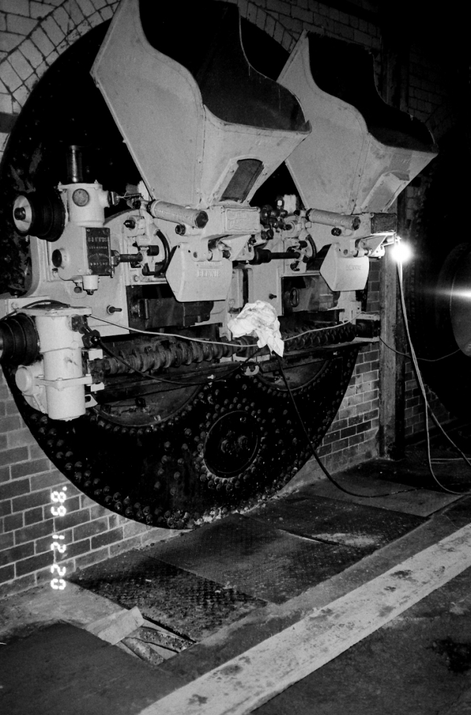 Ellenroad 1989. The dummy boiler front in place with the original shovel stokers mounted on it .