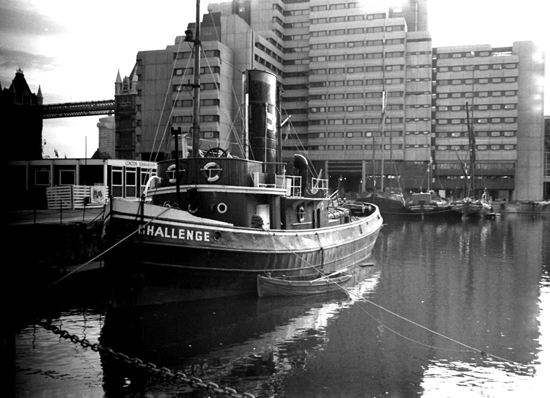 A steam tug at St Katherine's Dock in London in 1976