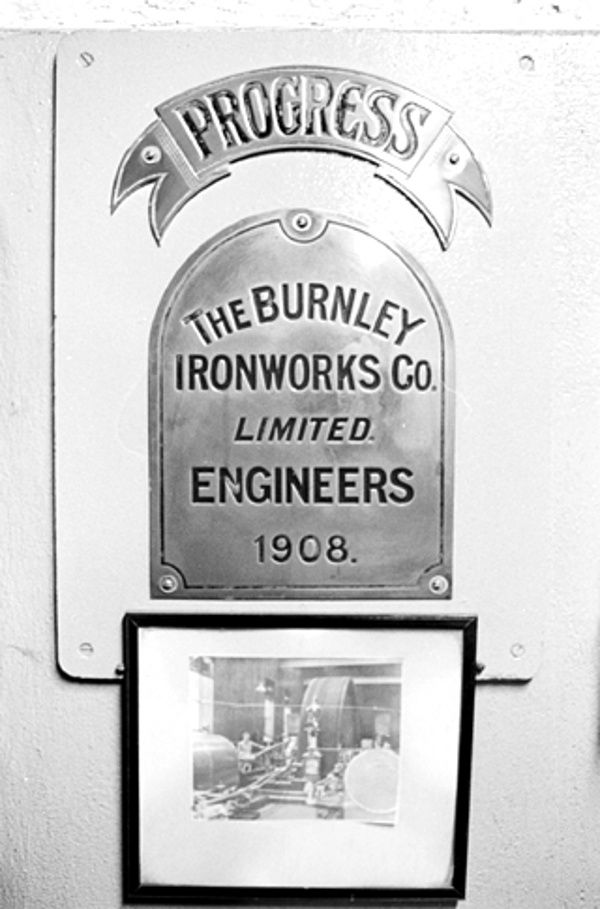 Brook Shed engine name plate. Seen in the office of Johnson and Johnson on New Road in Earby in 1977
