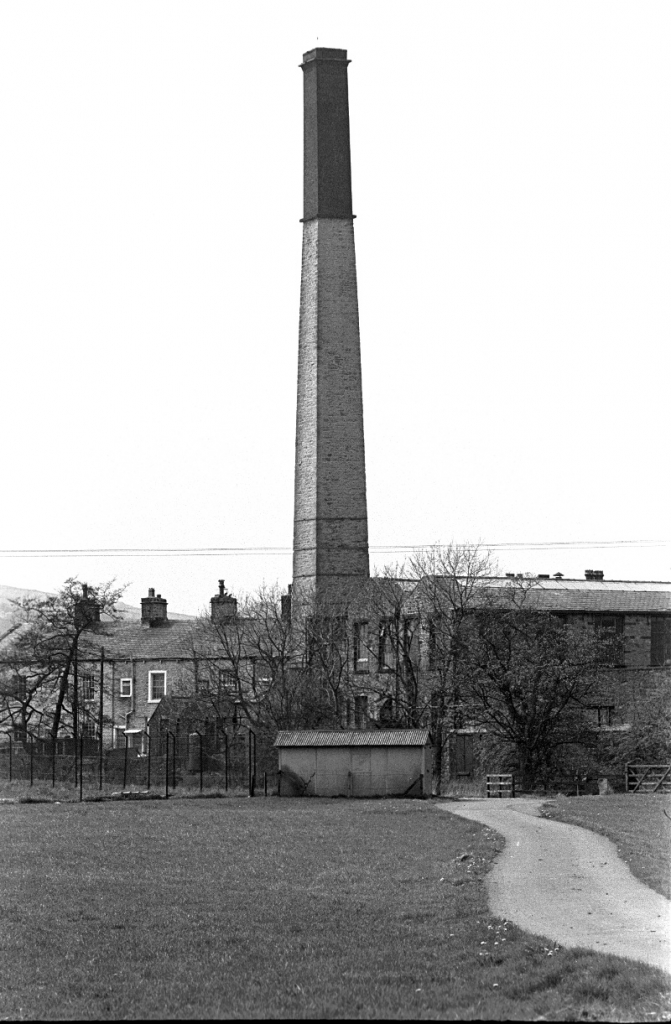 Sough Bridge Mill chimney with its brick extension.