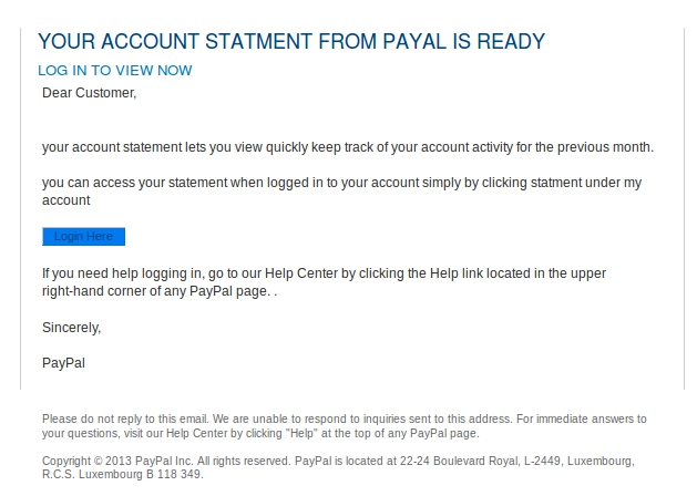 Paypal scam email message