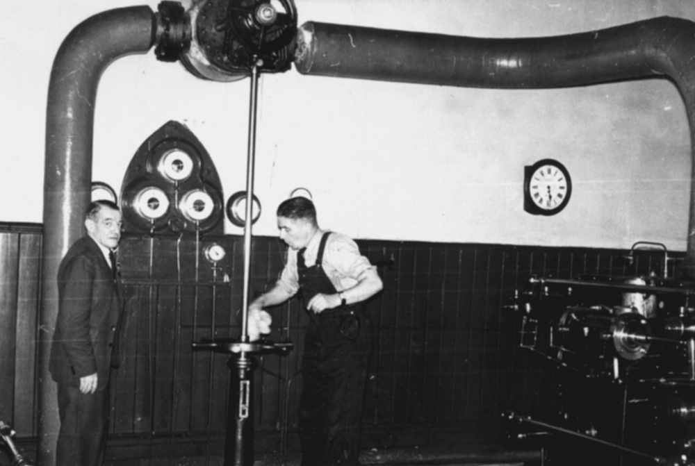 Ernest Marshall stopping Wellhouse engine for the last time in 1965. I think the man with him may be his father Tom Marshall.