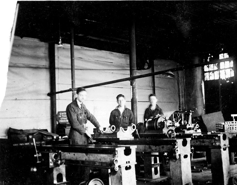 Apprentices at Brown and Pickles in 1939. Walt Fisher, James Crook and Ken Crew.