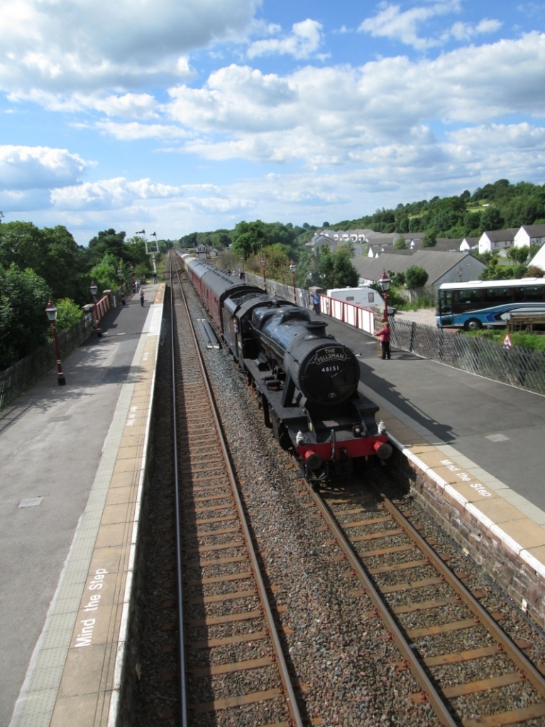 Stanier heavy freight 2-8-0 locomotive 48151 hauling the FELLSMAN steam excursion train. Appleby 9 July 2014