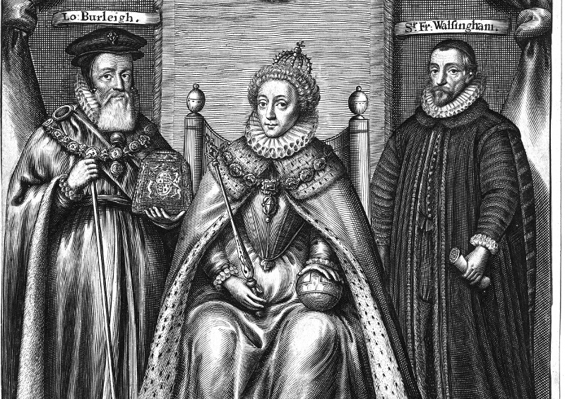 queen elizabeth with Burleigh and Walsingham