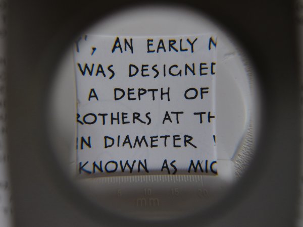 Tizer's folding magnifier - view through lens
