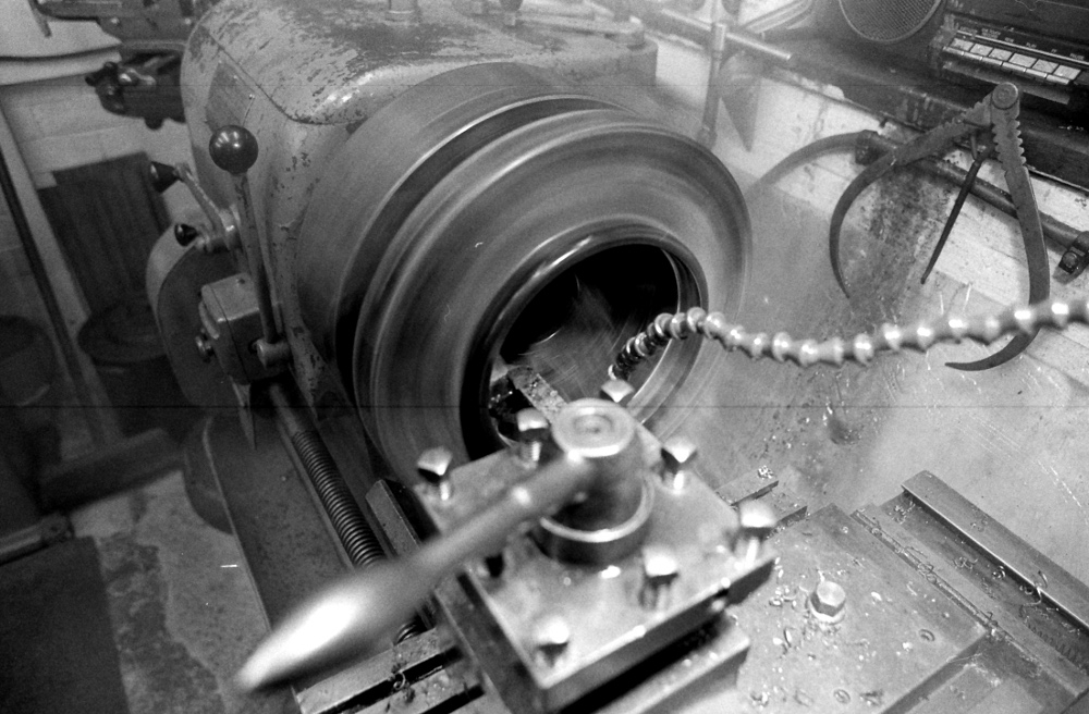 Boring a matric flange out for Imperial sized pipe. 1989