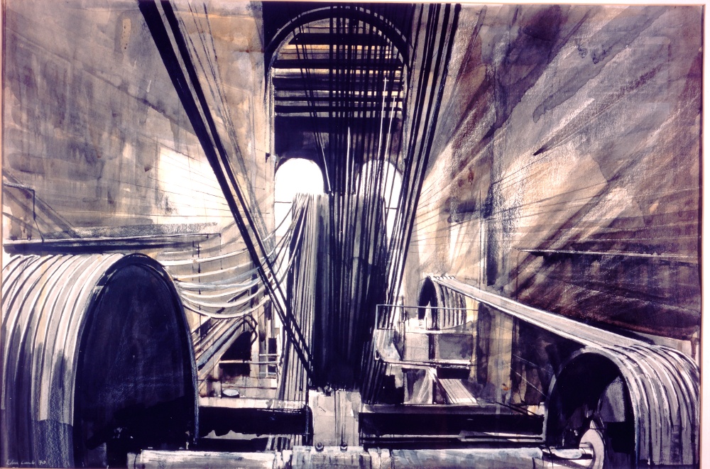 One of Edna Lumb's paintings of the rope race at Ellenroad.