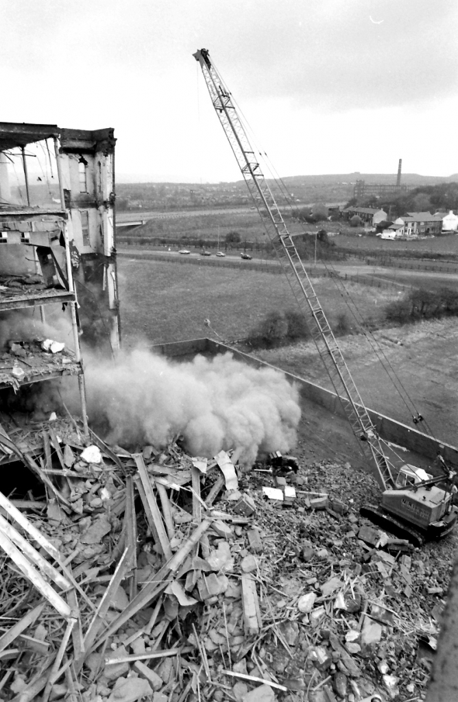 Norman Sutcliffe at Ellenroad in 1985 using his favourite tool, the crane and a 30cwt ball. He was an artist with it!