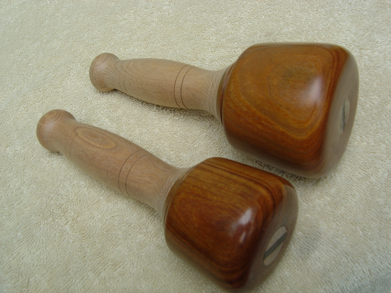 Woodturned , woodcarving mallets lignum vitea heads and ash shafts with ebony wedges.
