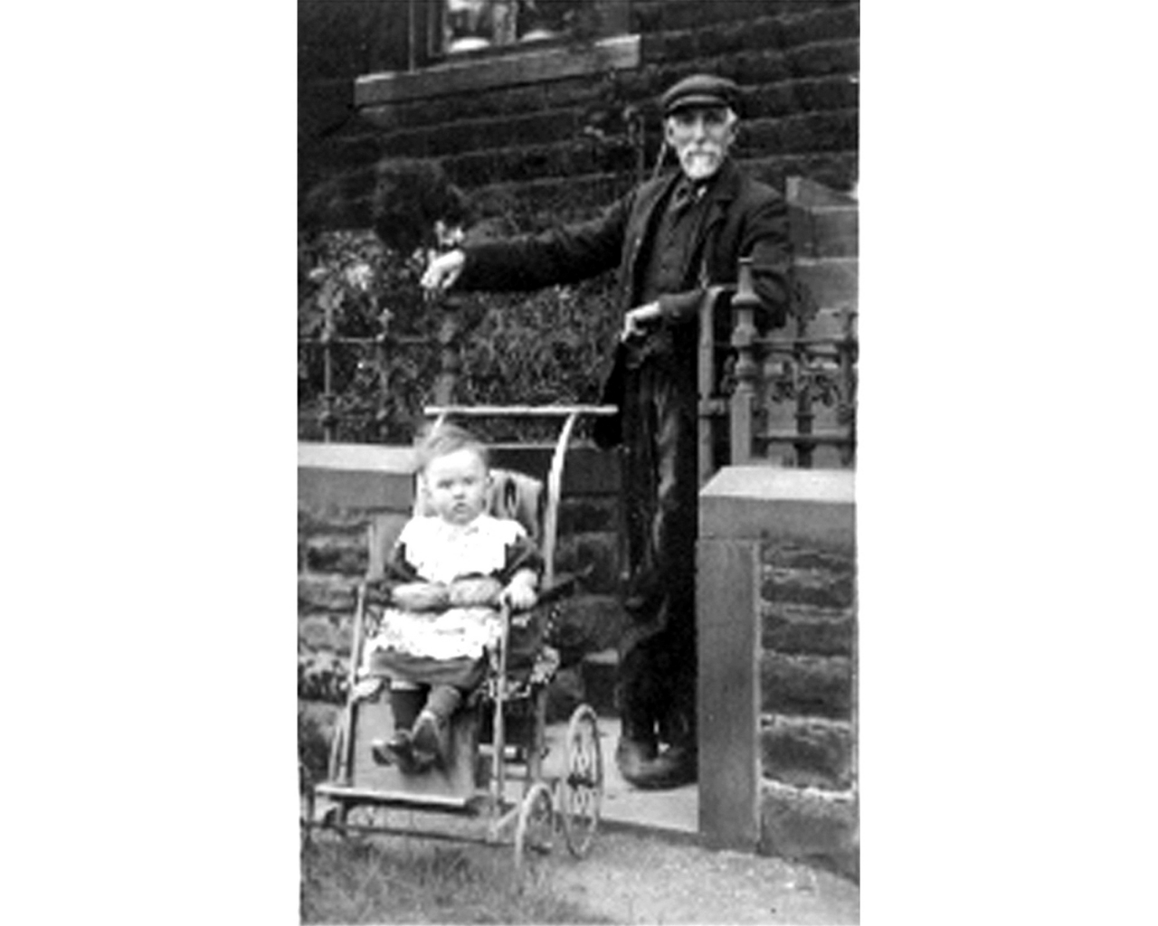 George Snowden and his grandchild in Earby. About 1900?