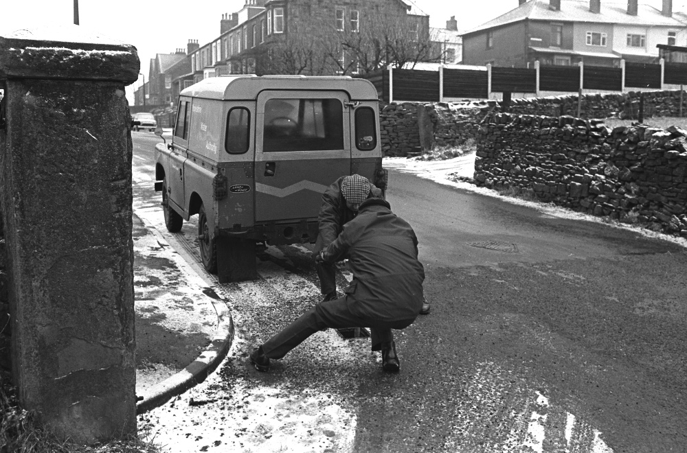 Water board men shutting the mains water supply down to Bancroft Shed at closure. December 22 1978.