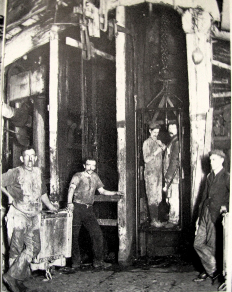 The bloke standing in the right hand side of the shaft cage is Samuel Barnes, the Mine Manager at the time.