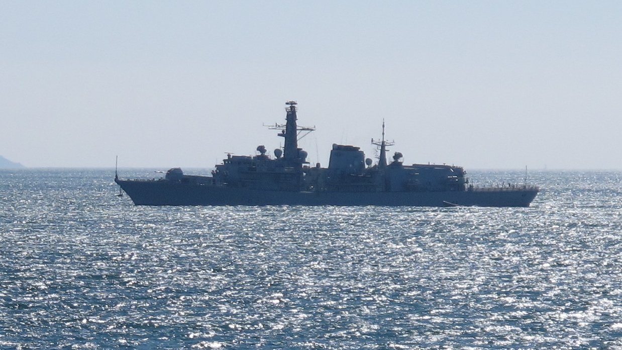 Frigate HMS St Albans, seen 21/04/2015 in Plymouth Sound, photo taken at Kingsand.