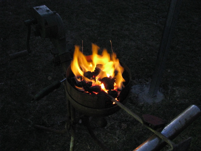 New firepot in use, on riveters/farriers portable forge