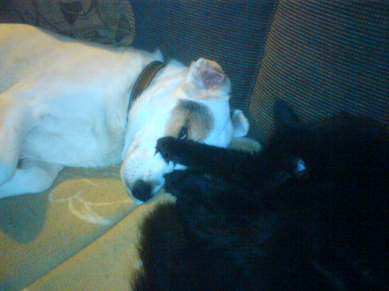 Alfie & Feebie share a settee.