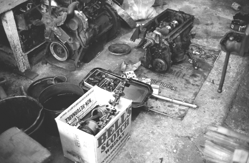 Rebuilding a Land Rover diesel engine in 1977 at Hey Farm.