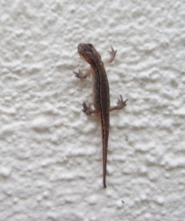 Young newt on wall (about 1.5 inches long). October 2015.